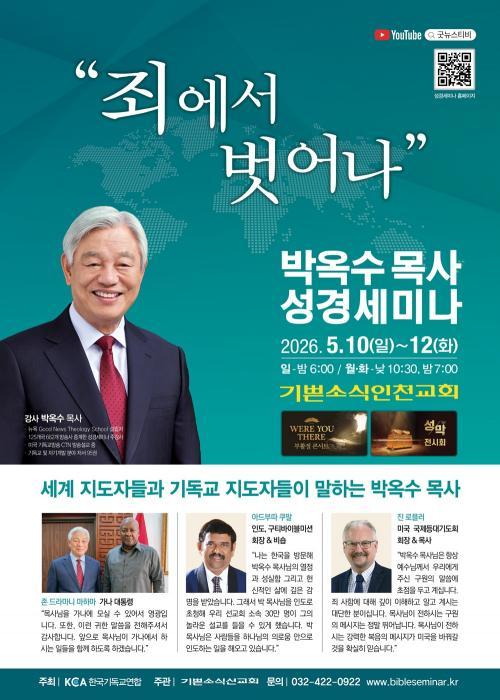 [½Åµ¿¾Æ¹æ¼Û=À̽ŵ¿±âÀÚ]¡®2026 ¹Ú¿Á¼ö ¸ñ»ç ¼º°æ¼¼¹Ì³ª¡¯°¡ 5¿ù 10ÀÏ(ÀÏ)ºÎÅÍ 12ÀÏ(È­)±îÁö 3Àϰ£ ±â»Û¼Ò½ÄÀÎõ±³È¸¿¡¼­ ¿­¸°´Ù. Çѱ¹±âµ¶±³¿¬ÇÕÀÌ ÁÖÃÖÇÏ°í ±â»Û¼Ò½Ä¼±±³È¸ ÁÖ°üÀ¸·Î ¿­¸®´Â À̹ø ¼º°æ¼¼¹Ì³ªÀÇ ÁÖ°­»ç´Â ±â»Û¼Ò½Ä°­³²±³È¸ ¹Ú¿Á¼ö ¸ñ»ç´Ù. ±×´Â ¡®ÁË¡¦